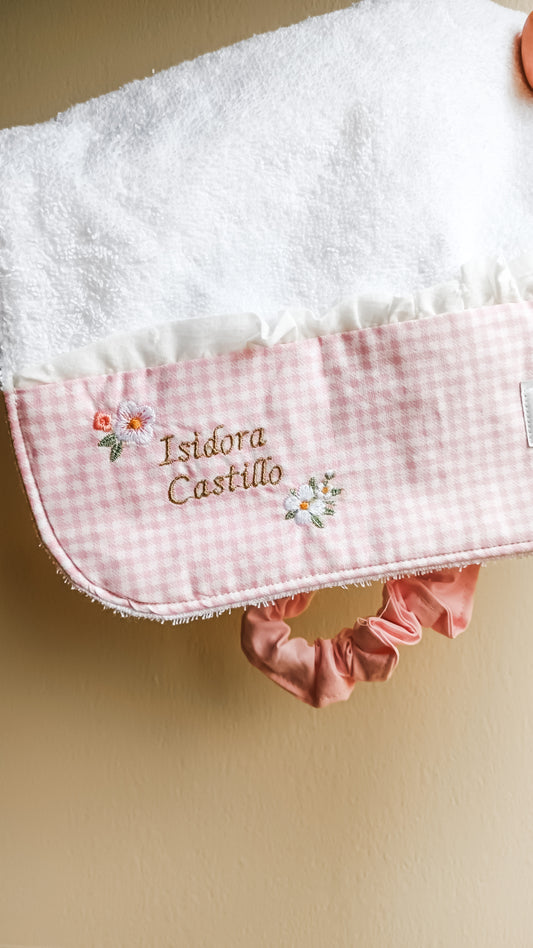 Conjunto bolsa toalla osita flores