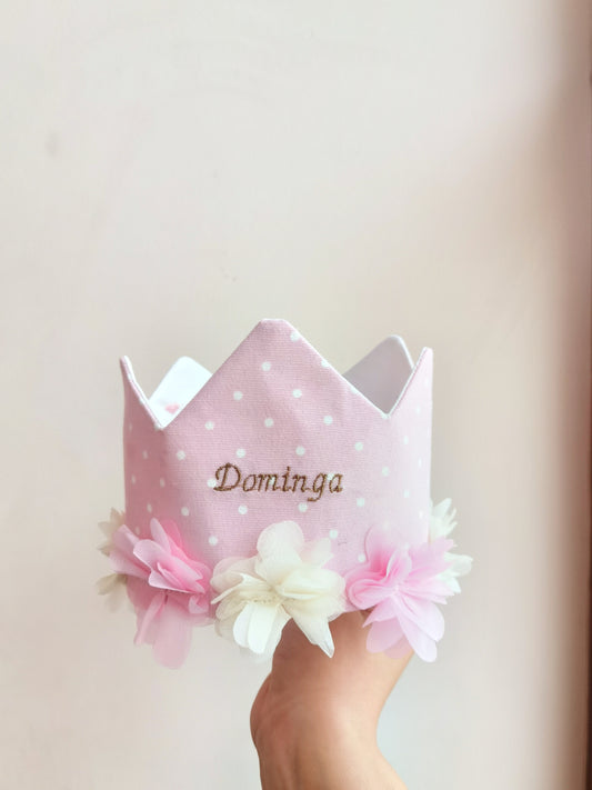 Corona rosada con Puntos blancos