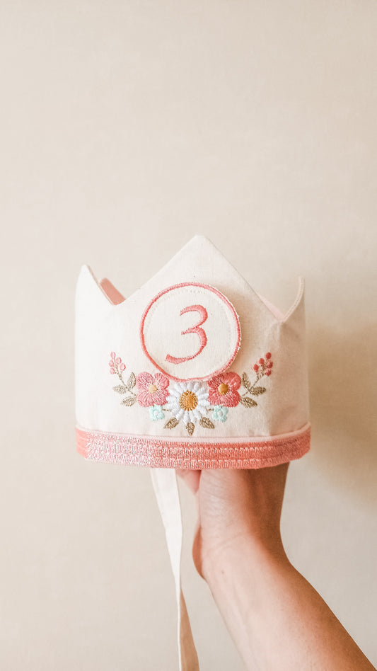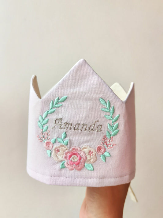 Corona flores bordadas racimo