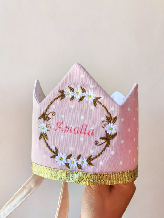 Corona rosa punto blancos flores Blancas