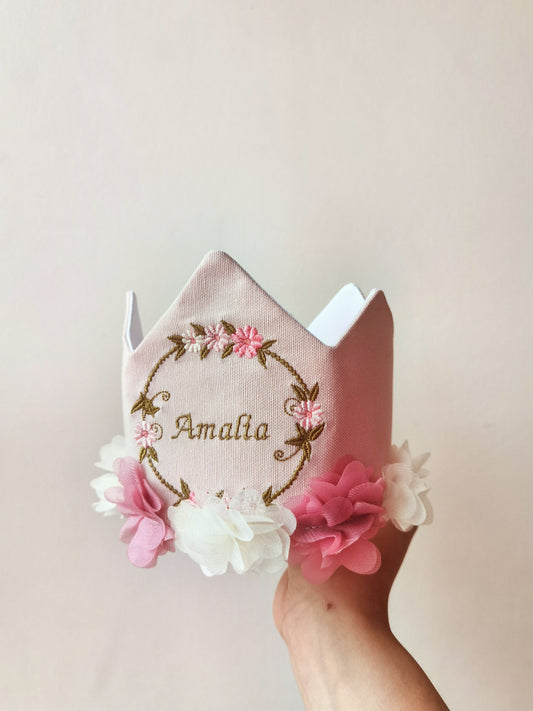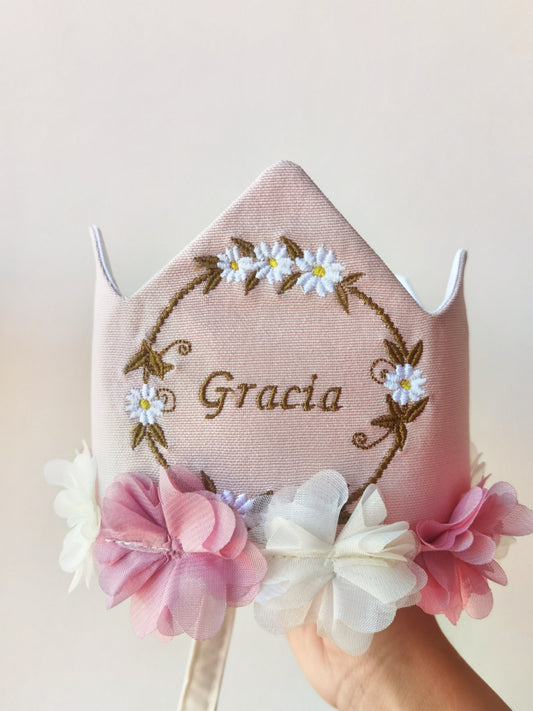 Corona Rosa claro y Flores delicadas