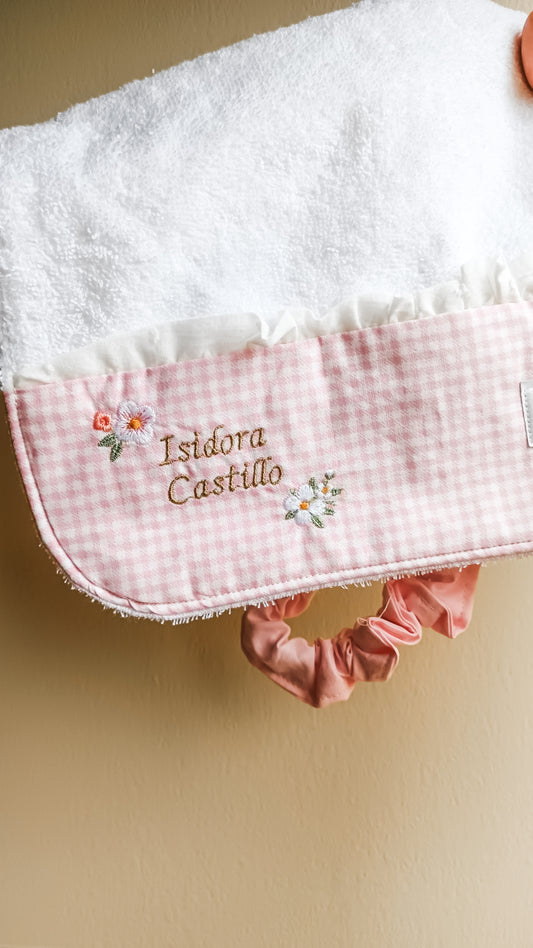 Toalla personalizada con flores y vuelos (tela con diseño)