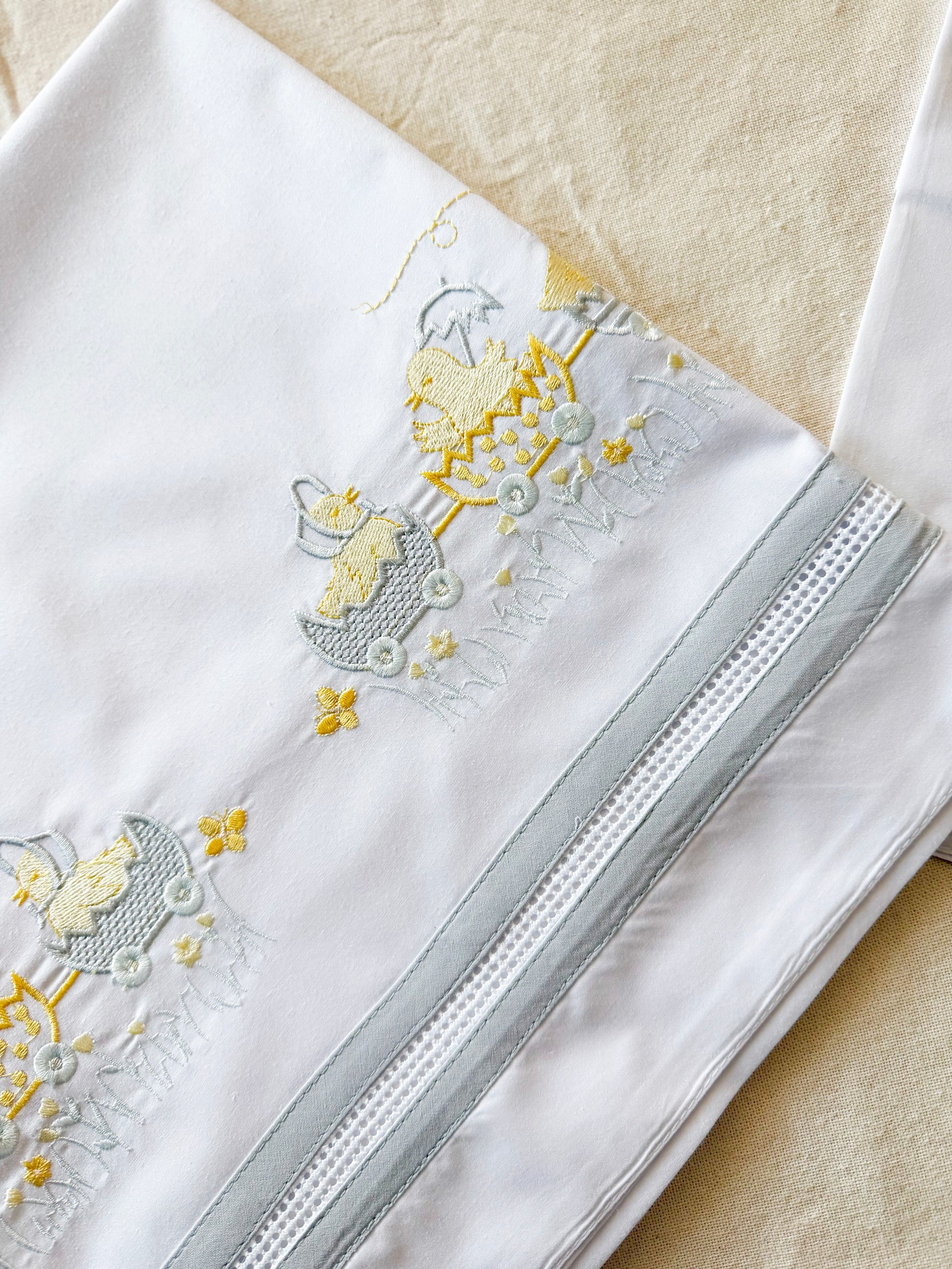 Sábanas de cuna bordadas, suaves y resistentes, pensadas para el uso diario real.